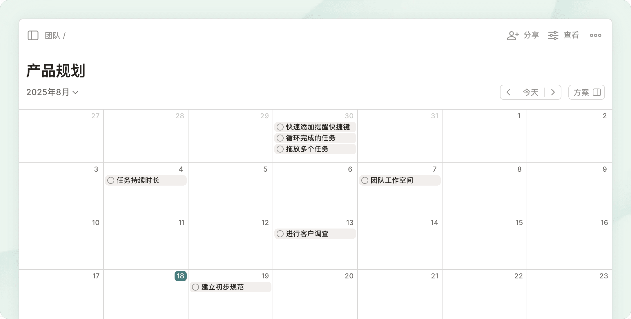 切换列表、日历或看板视图来轻松计划和跟进您最重要的项目。