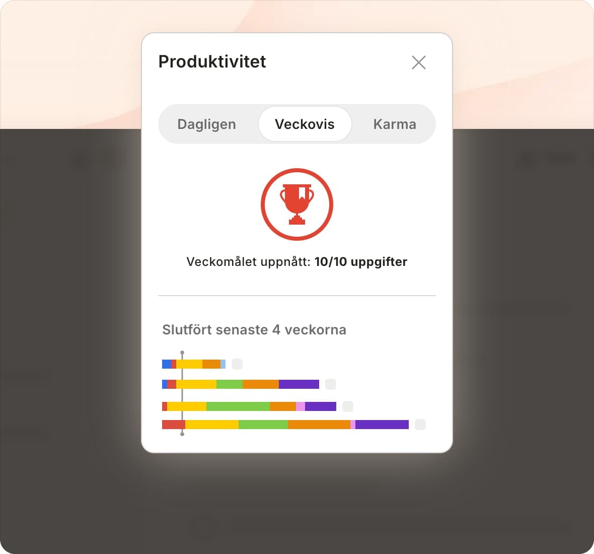 Slutför uppgifter, få upp bra fart och samla poäng för att ta dig upp till mästarnivå i Todoist.