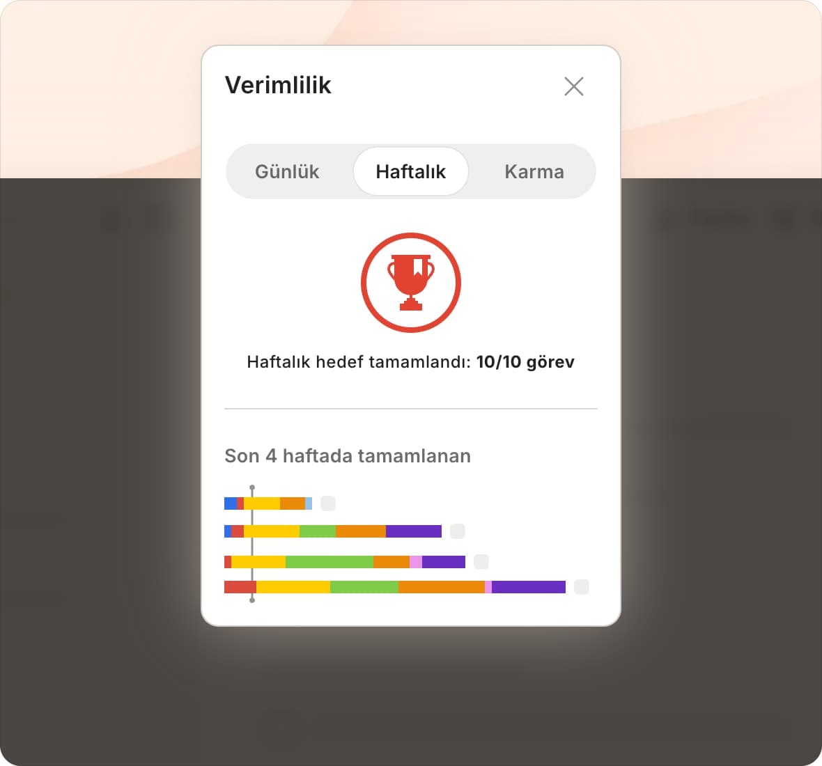 Görevleri tamamla, ivme kazan ve puan toplayarak Todoist ustalığına giden yolda bir üst seviyeye çık.