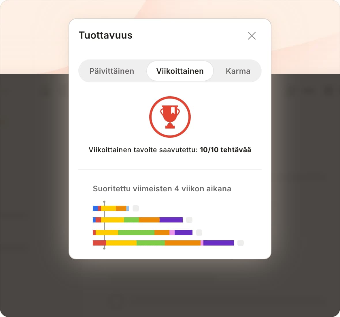 Suorita tehtäviä, kerää vauhtia ja ansaitse pisteitä matkallasi Todoist-mestariksi.