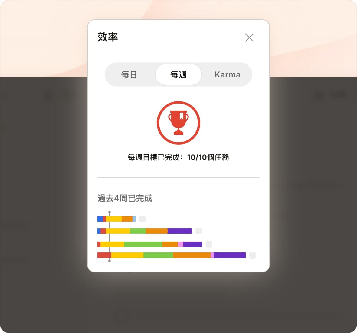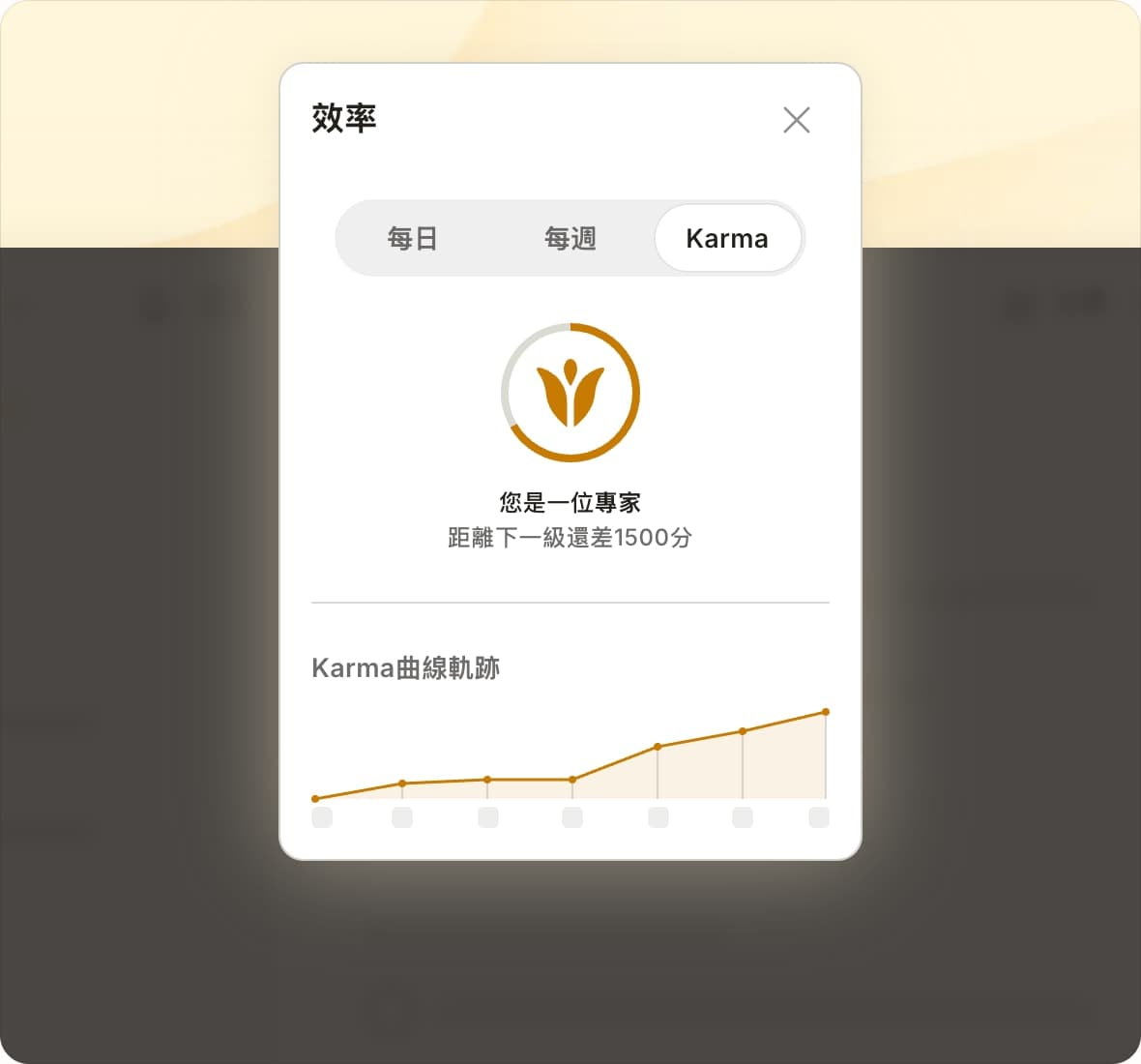 完成任務,累積動力,獲得分數來升級為Todoist大師。