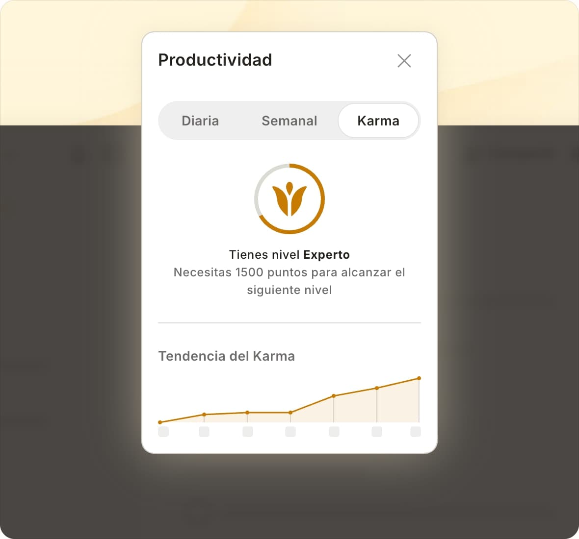 Completa tareas, gana momentum y acumula puntos para subir de nivel y acercarte a la maestría de Todoist.