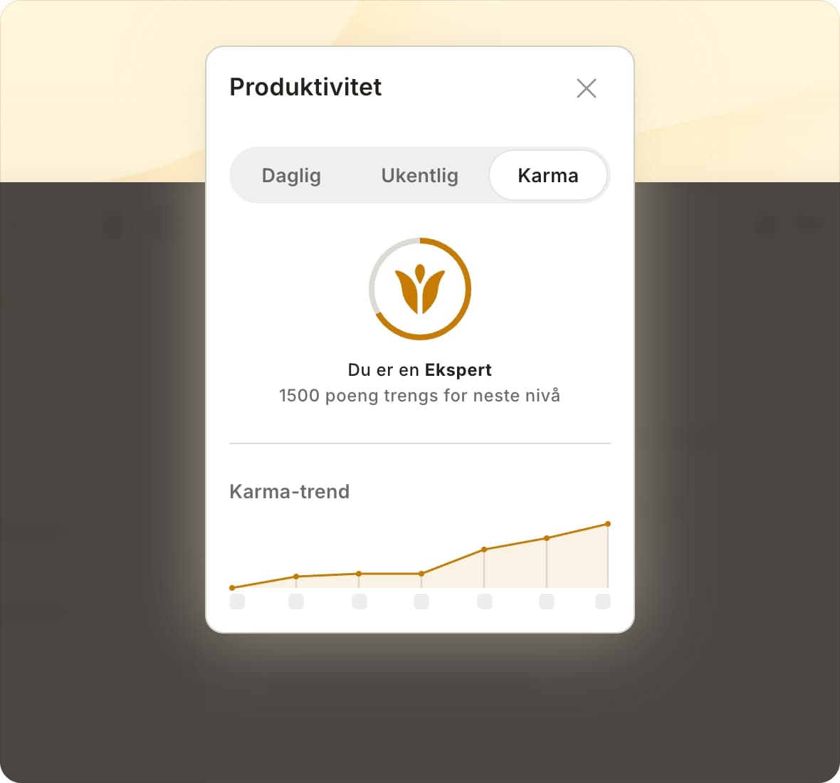 Begynn reisen din, tjen poeng når du fullfører oppgaver, og se fremgangen din bygge seg opp mens du når nye produktivitetsnivåer.