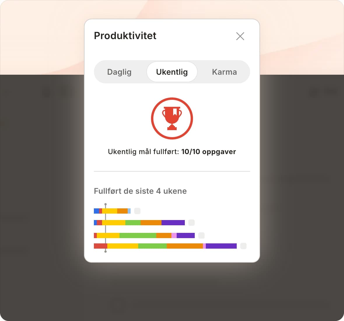 Fullfør oppgaver, bygg momentum og tjen poeng for å gå opp i nivå på veien mot Todoist-mestring.