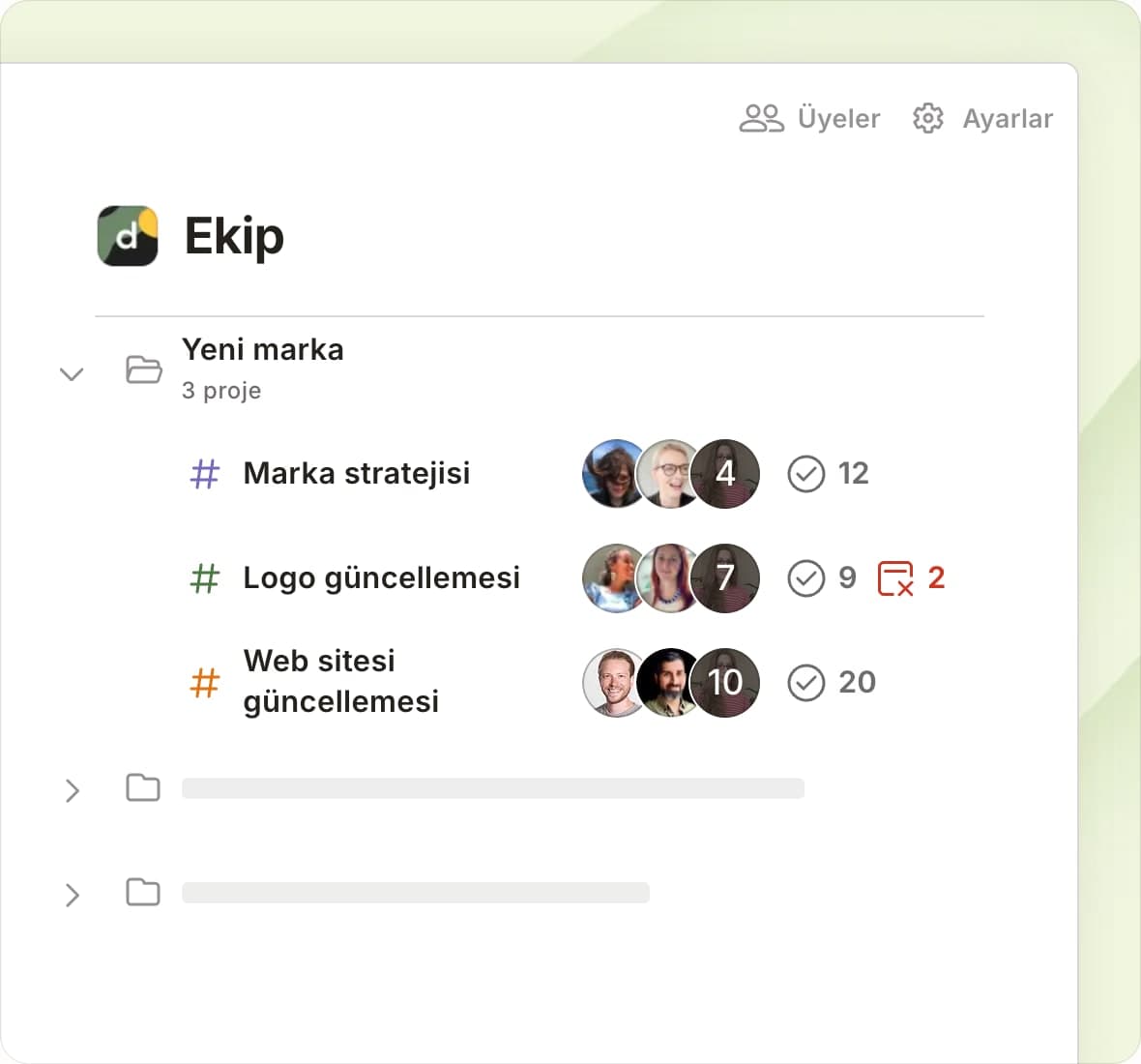 Çoğu proje ekip işidir. Herkesi tek bir yerde buluştur, uyumla çalışmanın keyfini çıkarın.