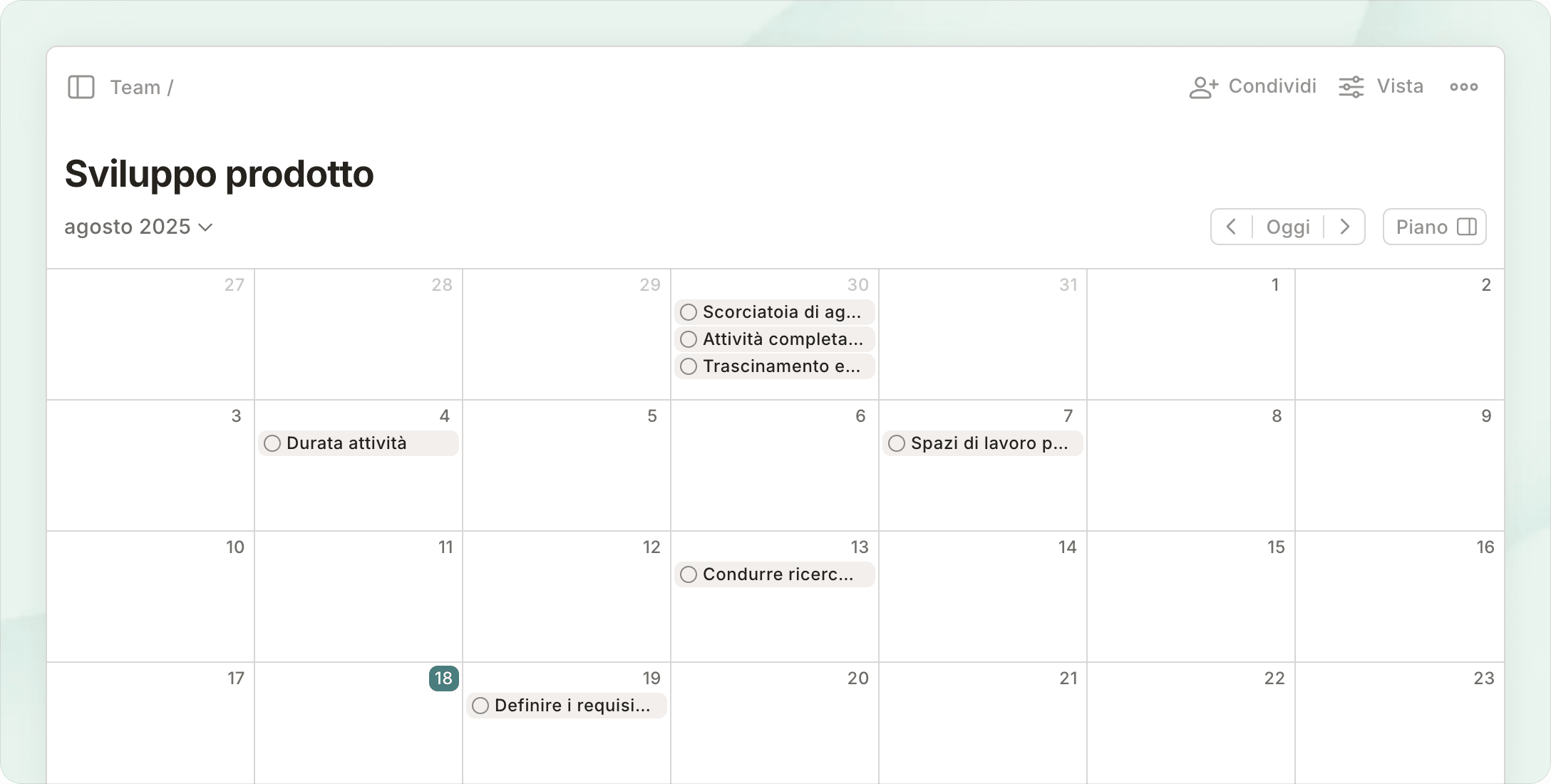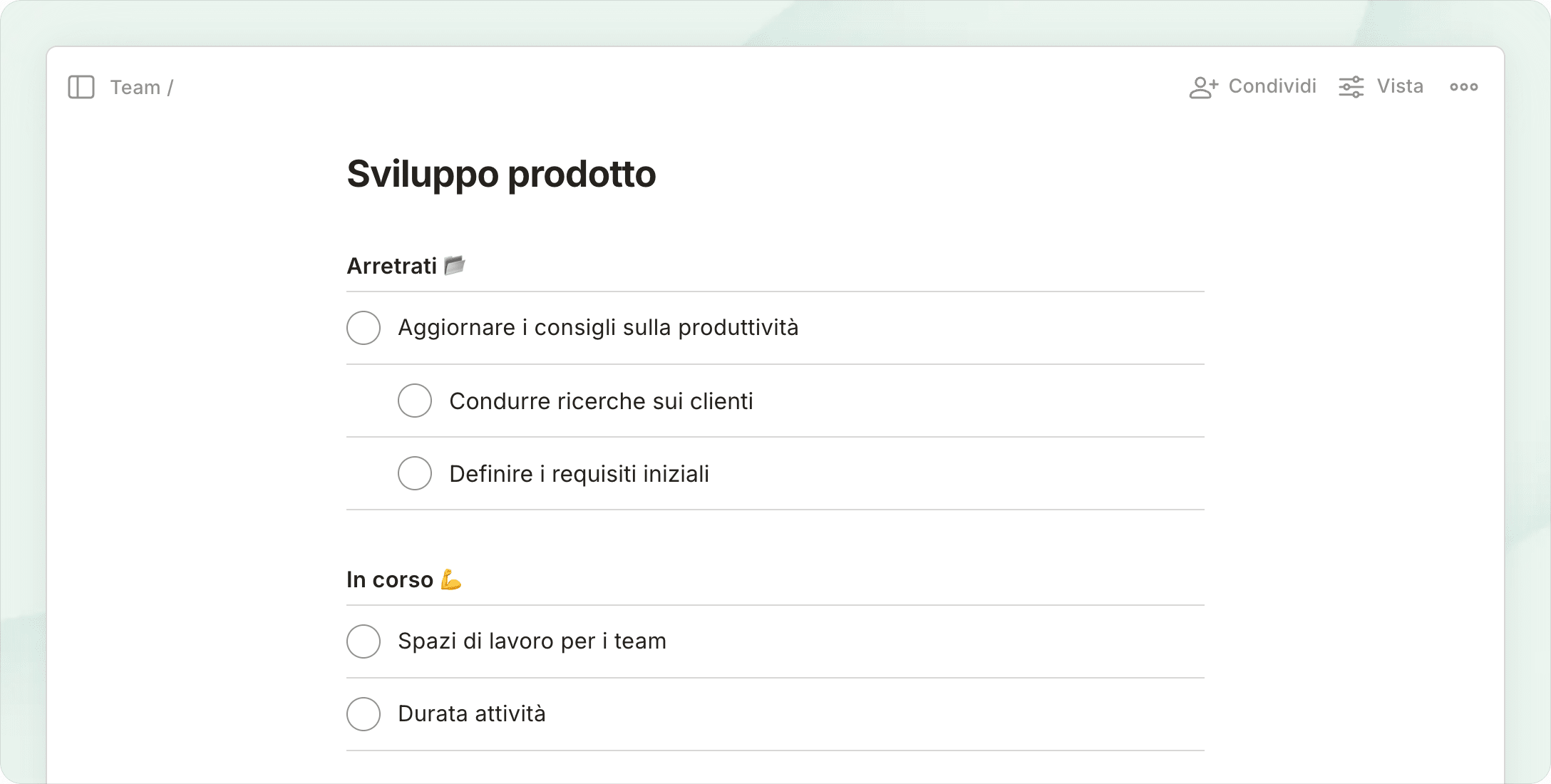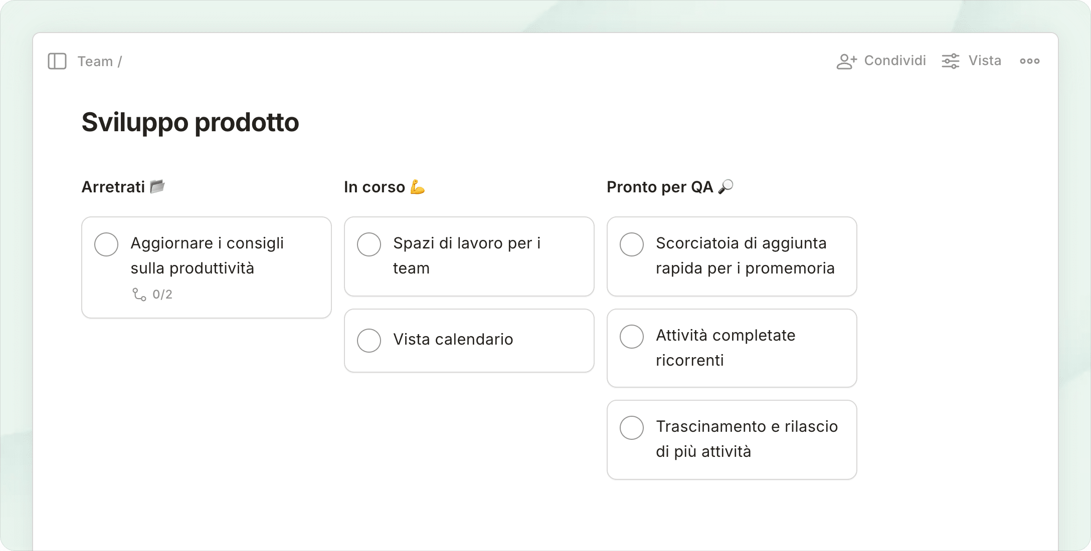 Fai brainstorming sulle board Kanban, pianifica con le liste e gestisci il tempo nel calendario: tutto in pochi clic.