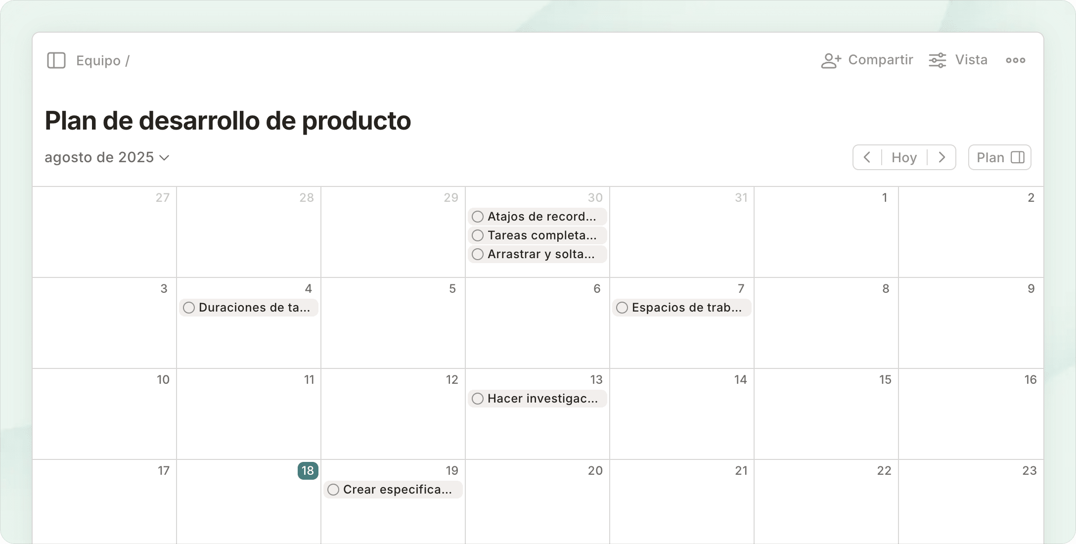 Haz lluvias de ideas en la vista de panel, planifica tareas en la vista de lista y reserva bloques de tiempo en la vista de calendario... todo con apenas unos clics.