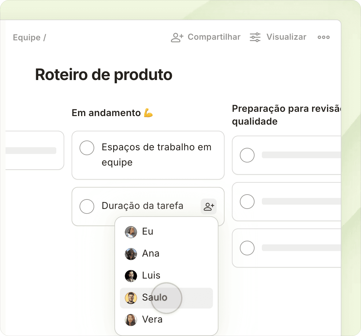 A maioria dos projetos não é composto de apenas uma pessoa. Reúna todos em um só lugar e curta a sensação de ver todo mundo alinhado.