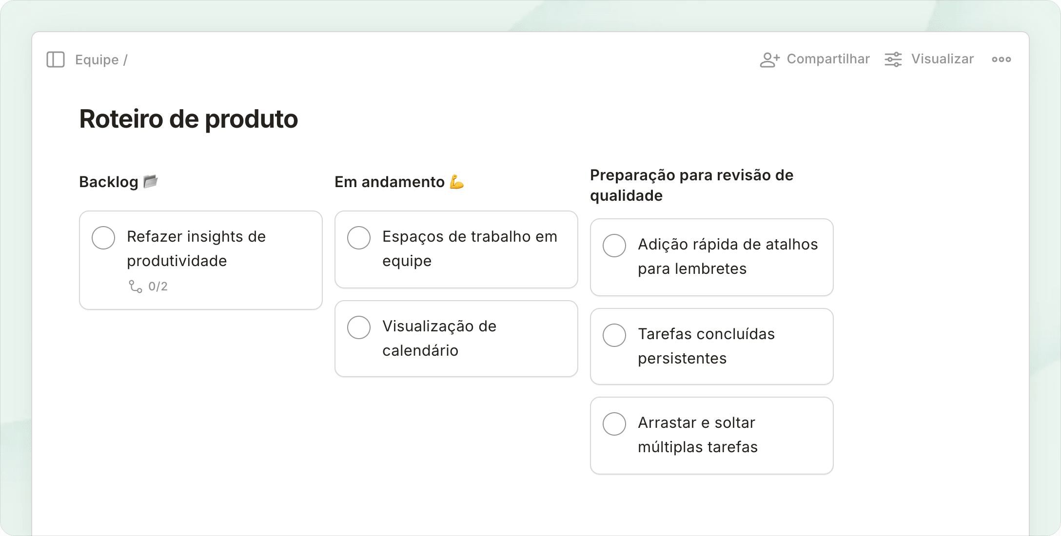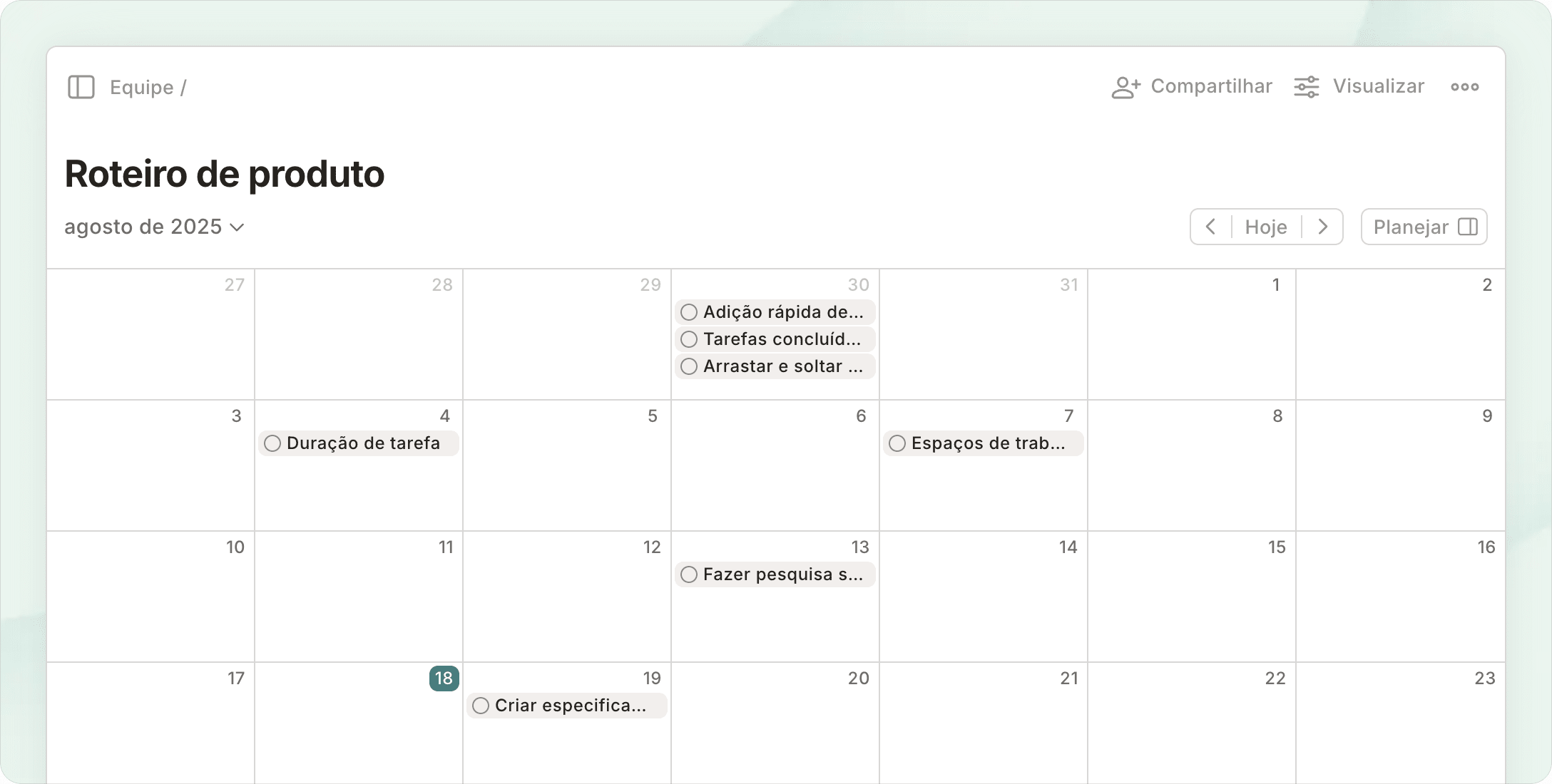 Faça um brainstorm em painéis, planeje usando listas e bloqueie tempo no seu calendário - tudo isso com apenas alguns cliques.