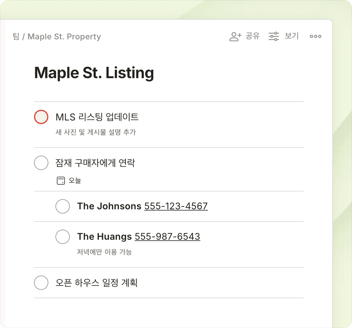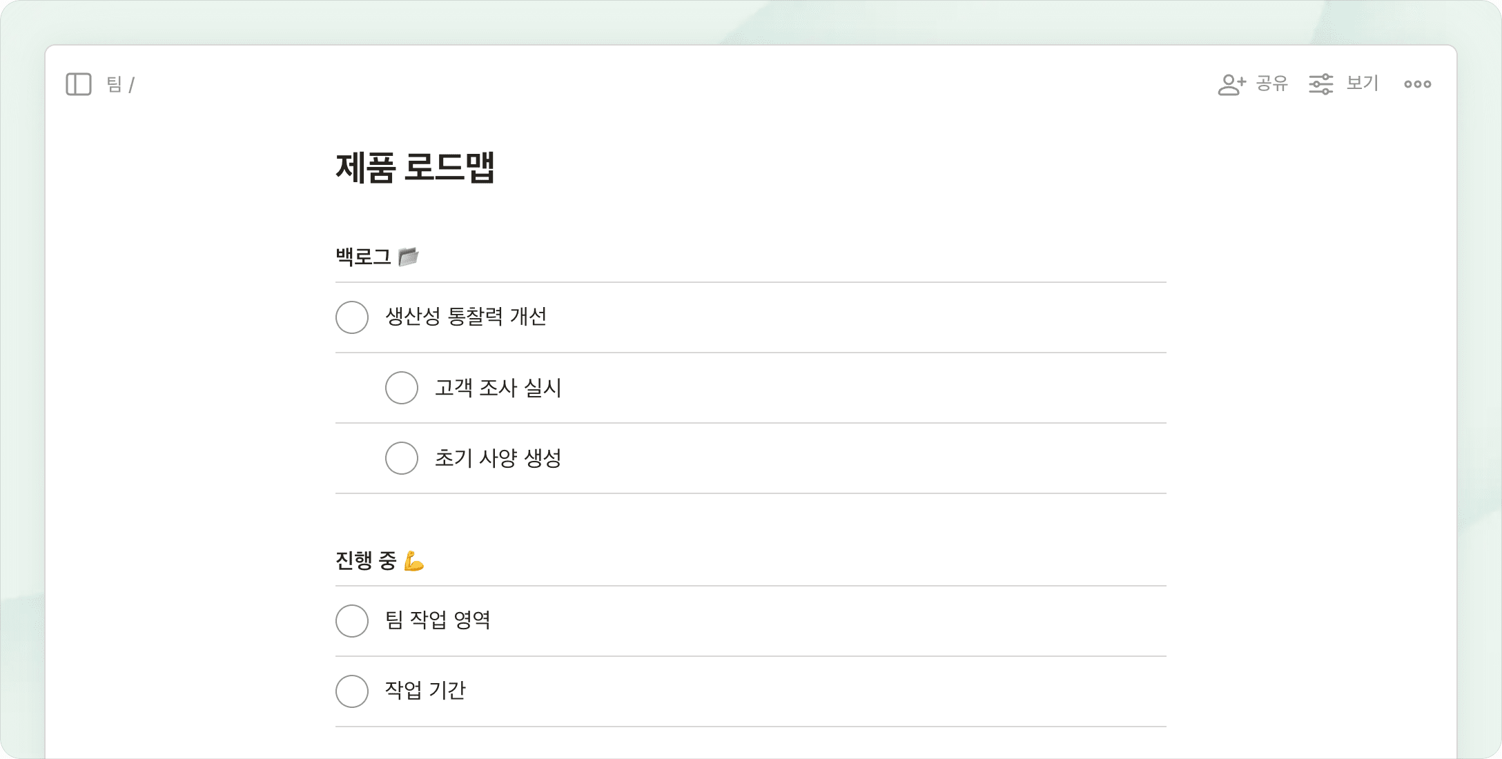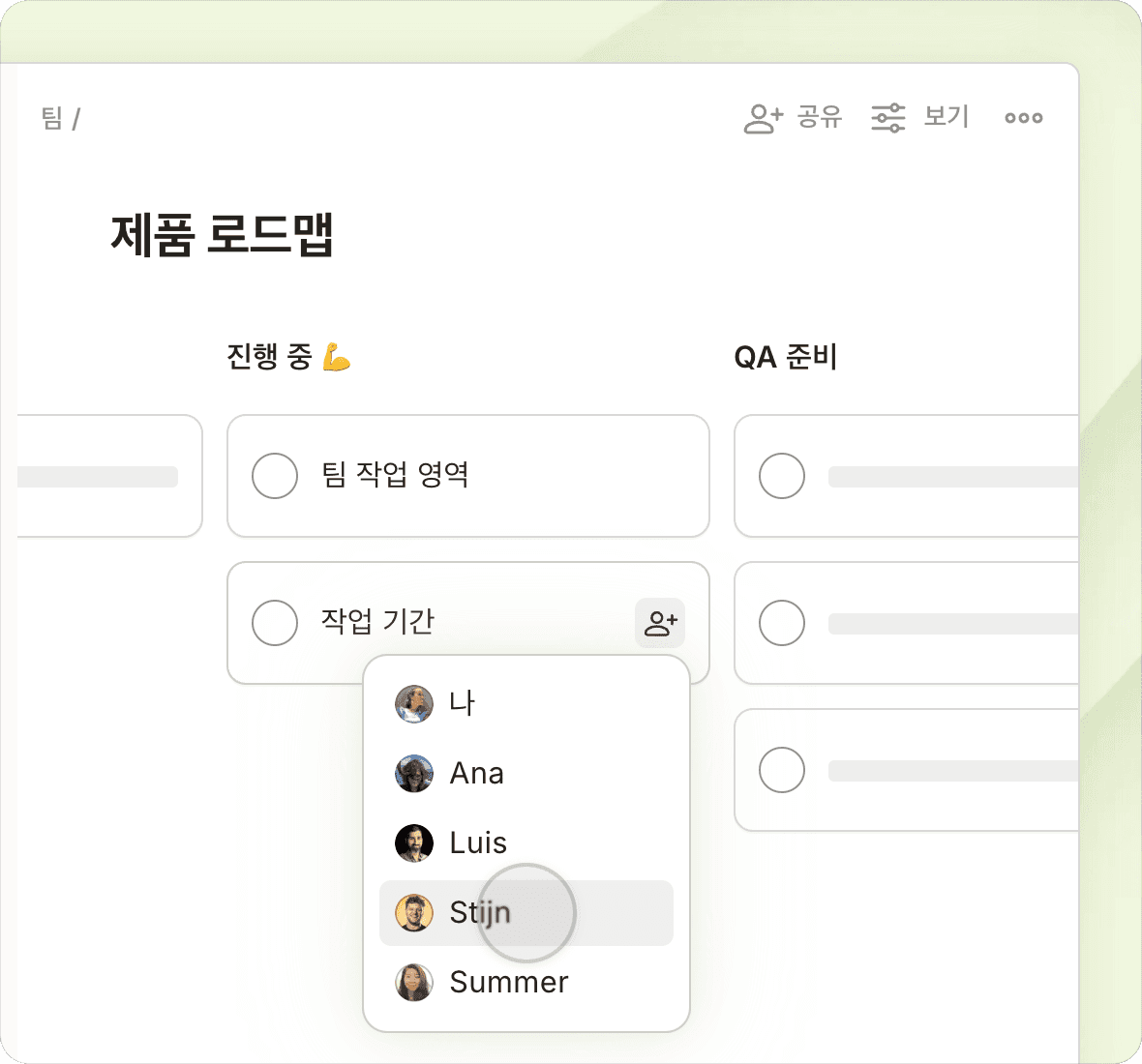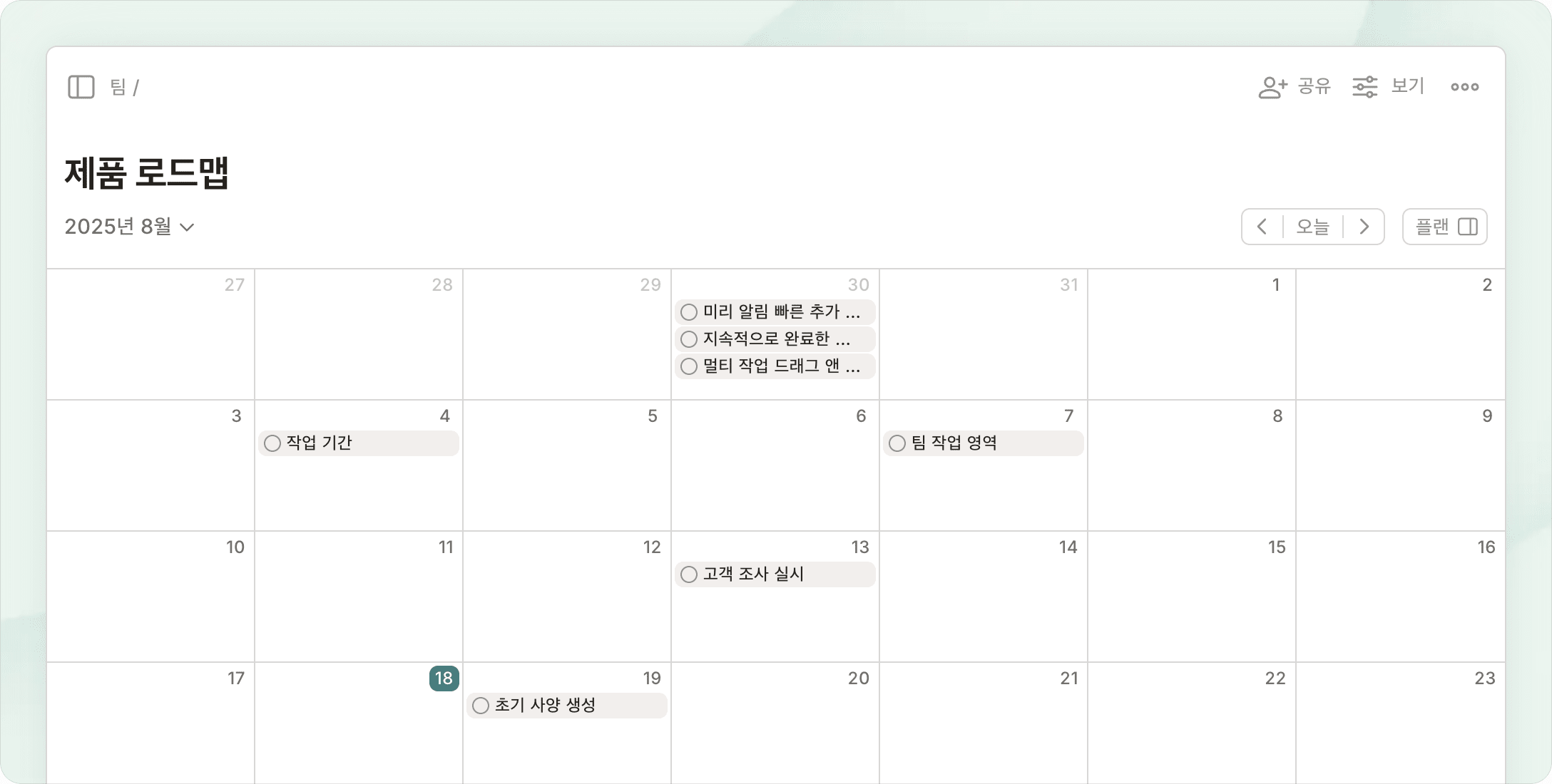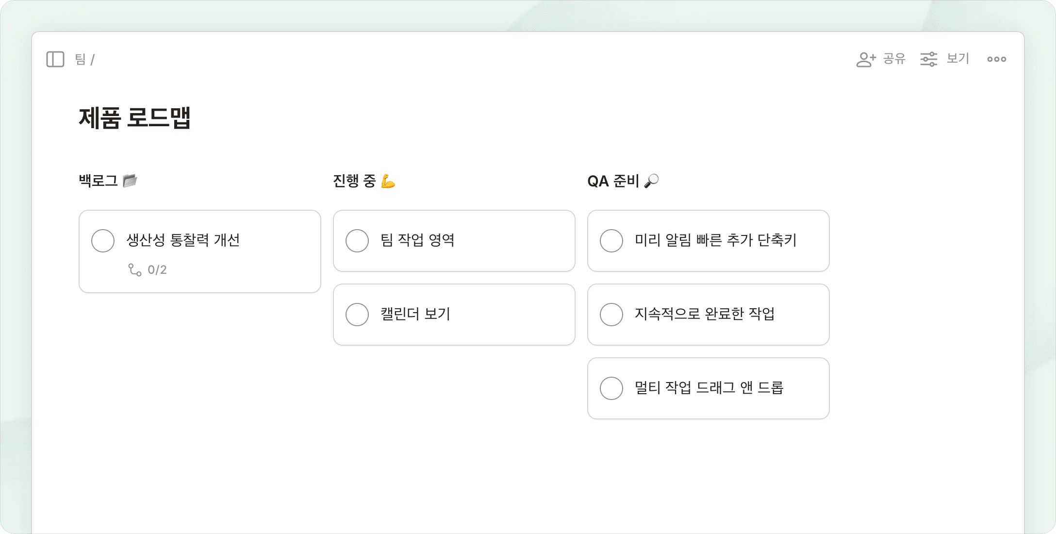 보드에서 브레인스토밍을 하고, 목록으로 계획을 세우고, 캘린더에서 타임 블록하세요.