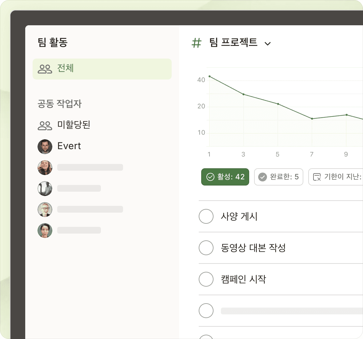 분산된 업무를 체계적인 프로젝트로 바꾸고, 힘들이지 않고 마감일을 맞추세요.