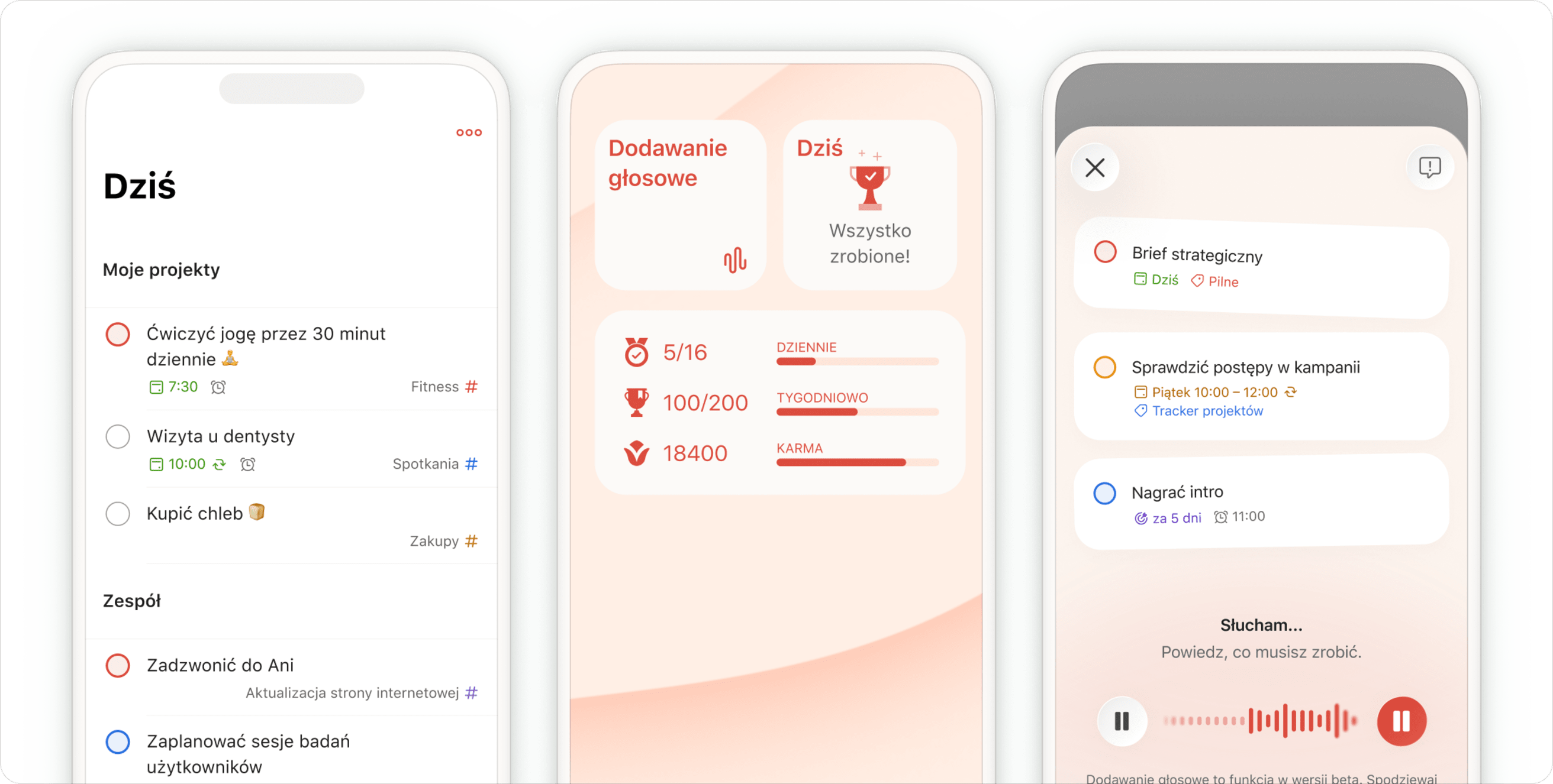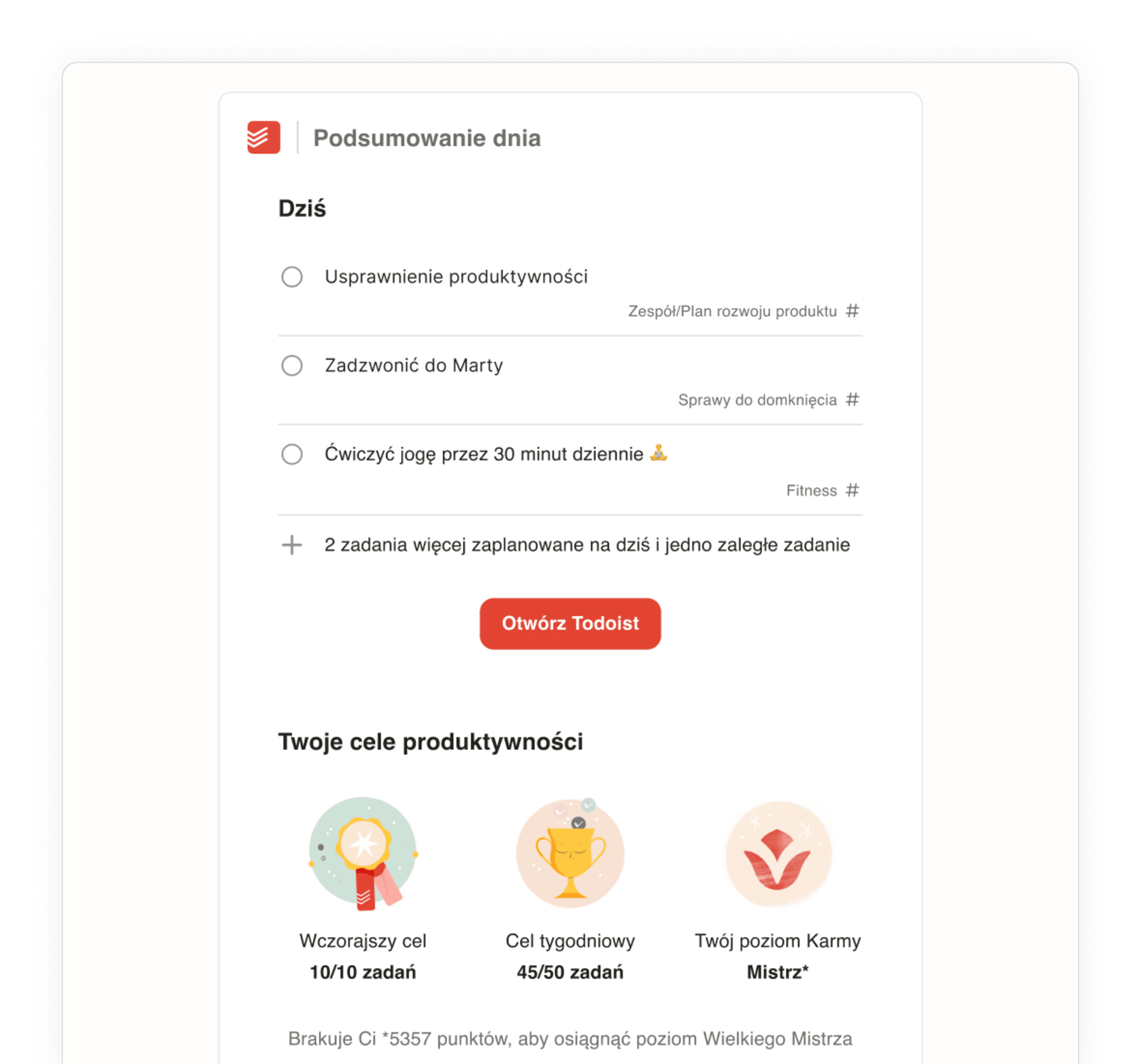 Zapisz wszystkie zadania w Todoist i natychmiast zyskaj jasność umysłu oraz pełną kontrolę nad swoim życiem.