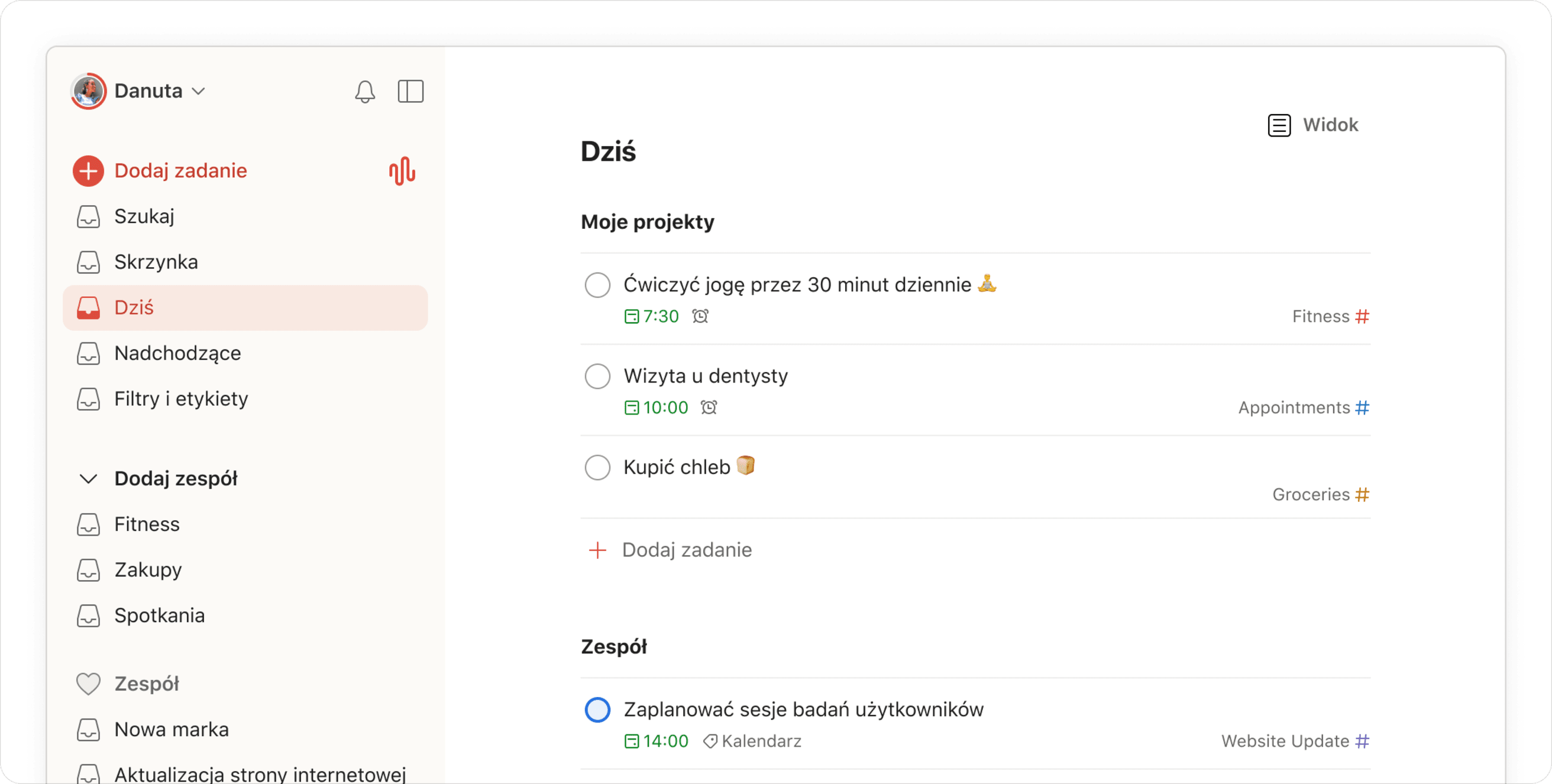 Wpisz zadania po polsku, a Todoist automatycznie je dla Ciebie zaplanuje.