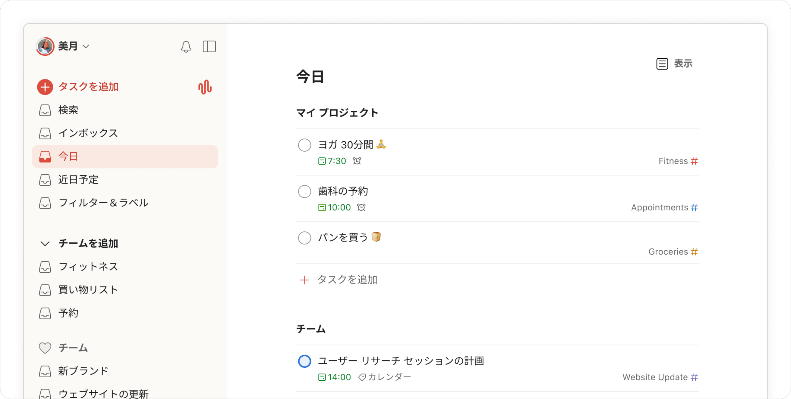 平易なことばでタスクを入力すれば、Todoist が自動で分類、ラベルを付けて、スケジュールします。