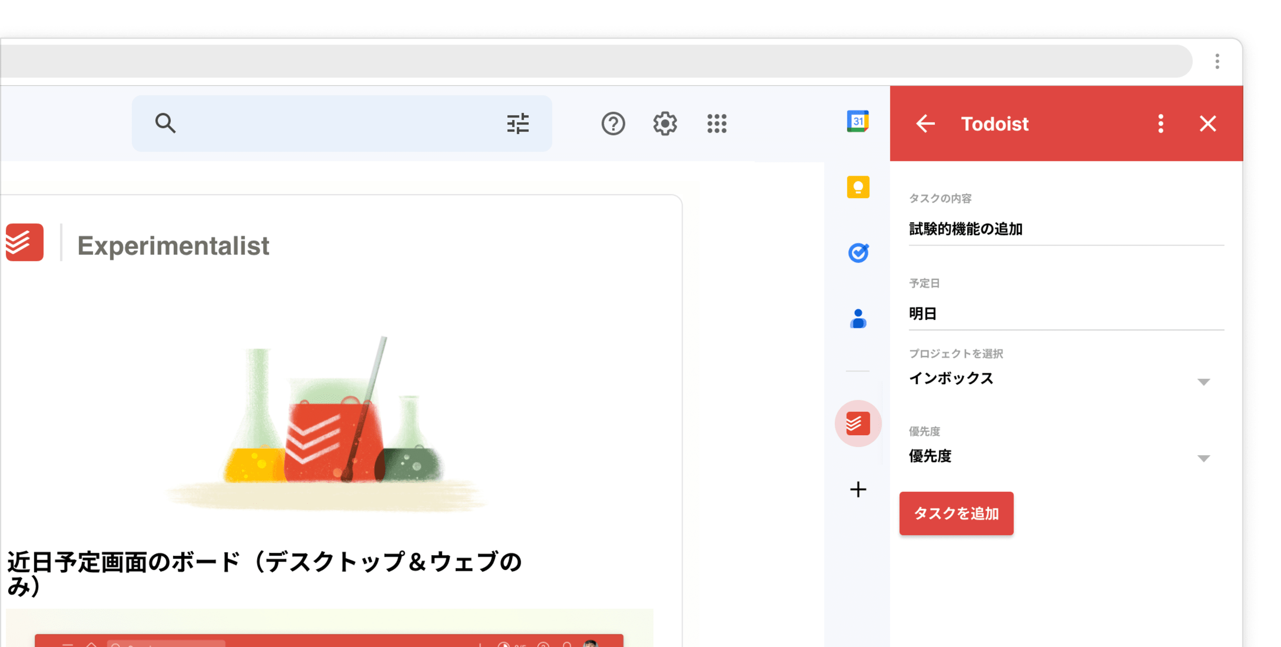 Todoist をメール、Slack、タイム トラッカー、50 以上の他のツールと連携しよう。