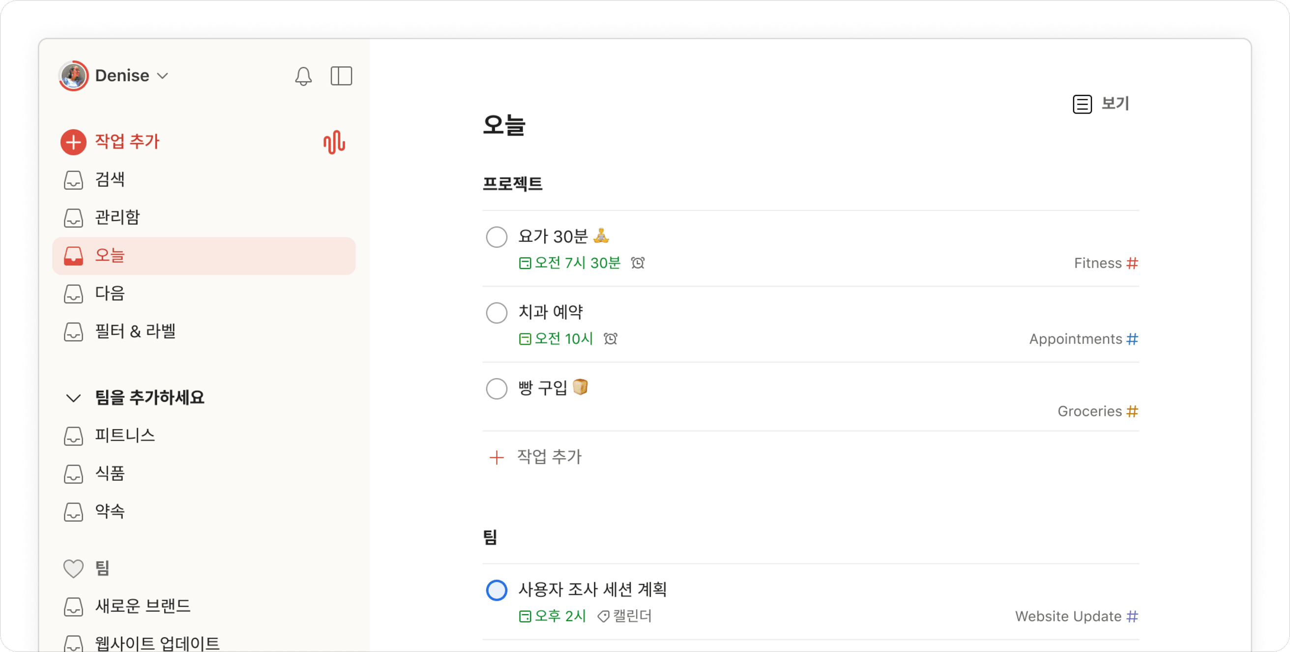 “Todoist는 생활에서 가장 중요한 일들과 시간을 정리하는 데 도움이 됩니다. 요즘 더 행복하고 자신감이 생겼습니다.”