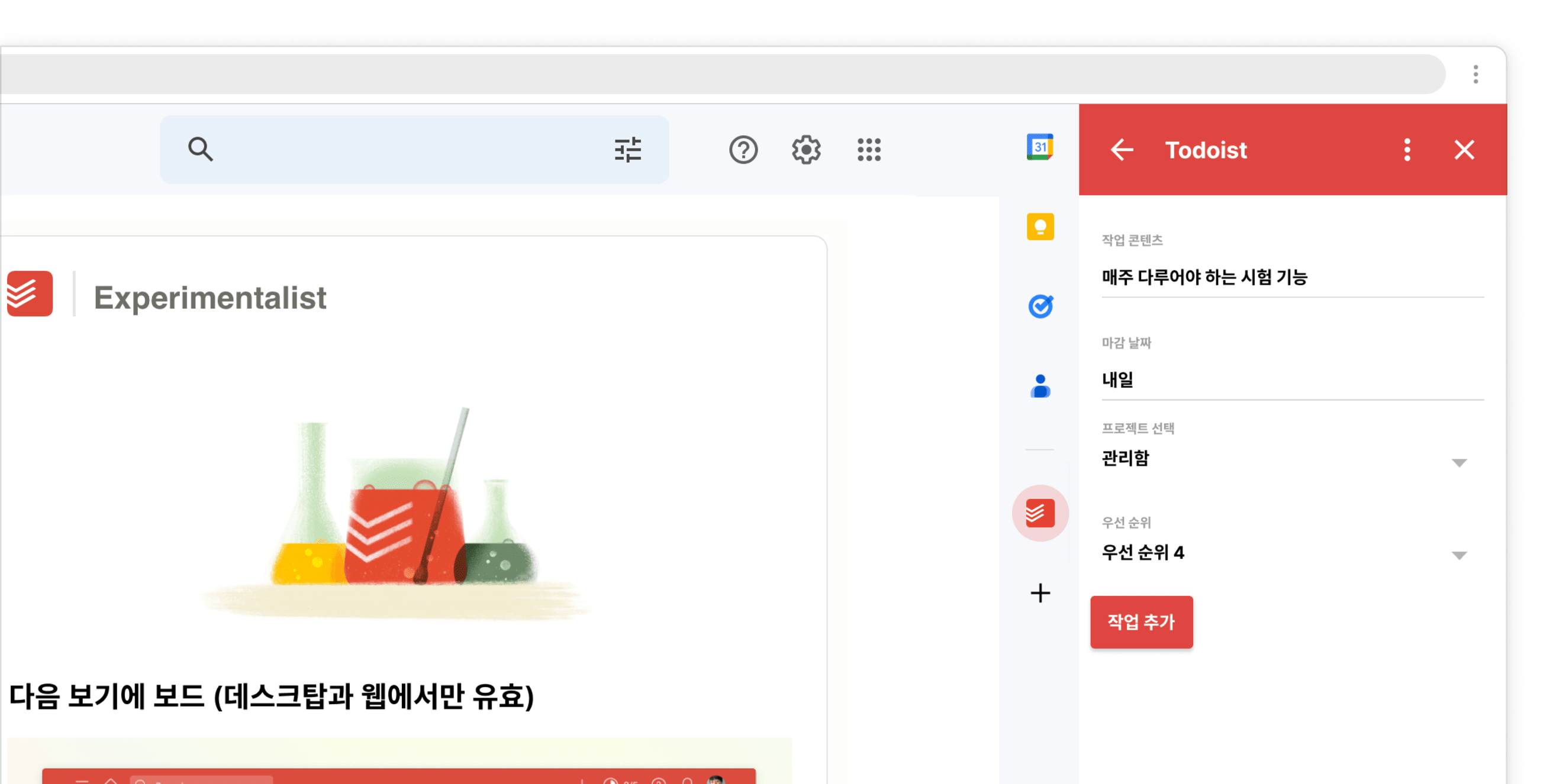 Todoist에 모든 작업을 수집해두면 즉각적으로 명확성과 통제력을 느낄 수 있습니다.