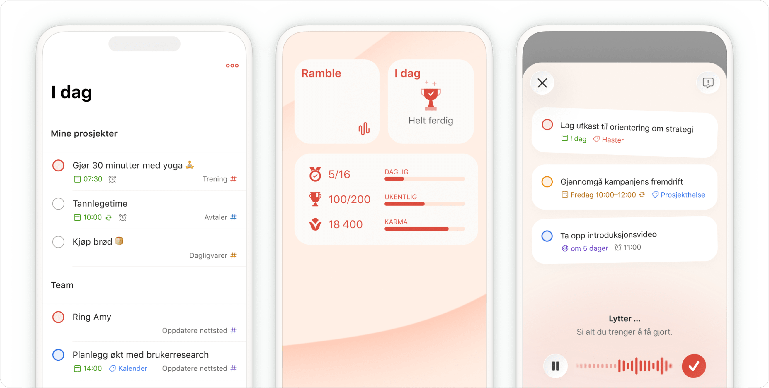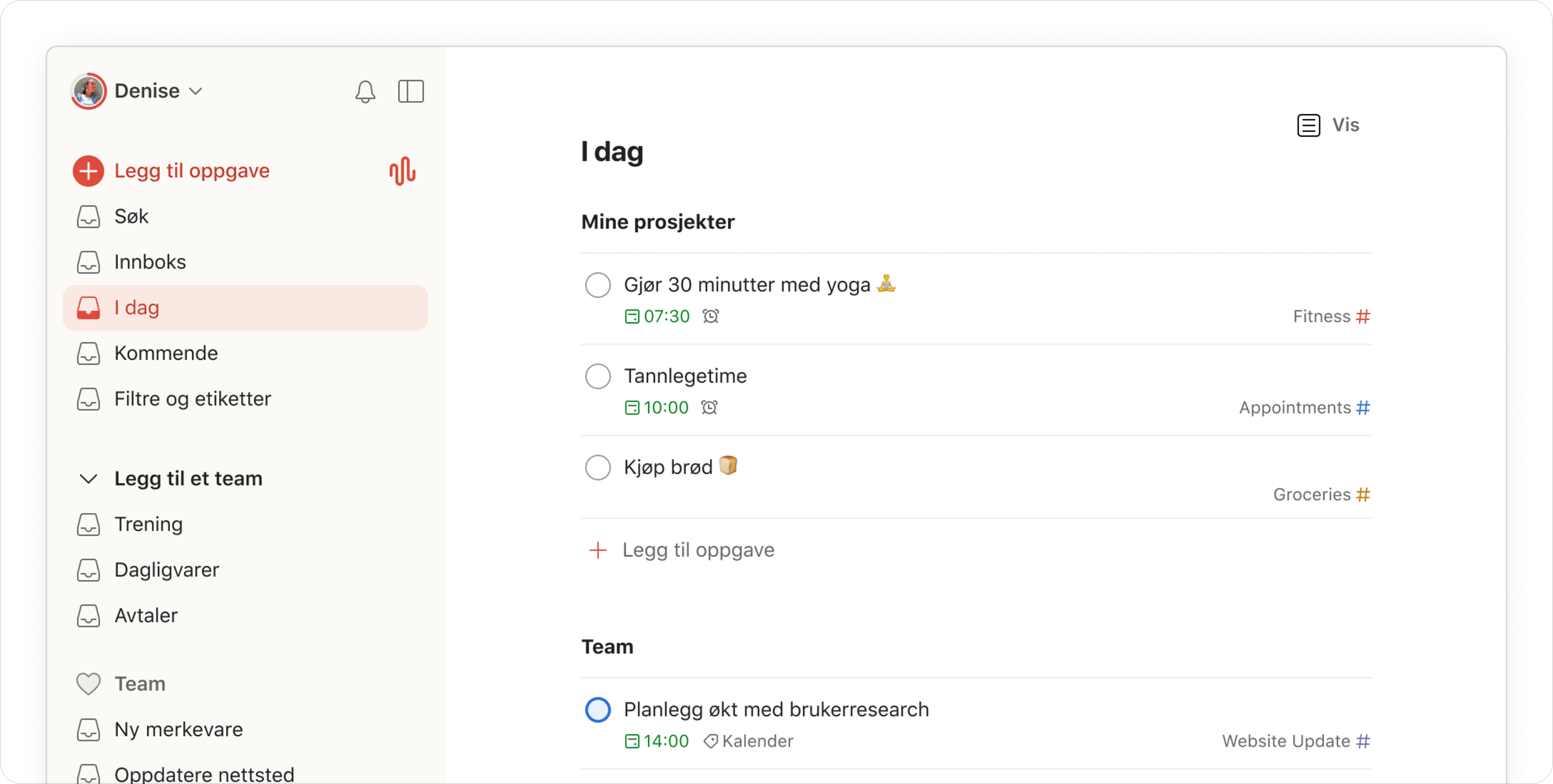 Skriv inn oppgaver på vanlig norsk, og se Todoist automatisk kategorisere, merke og planlegge dem.