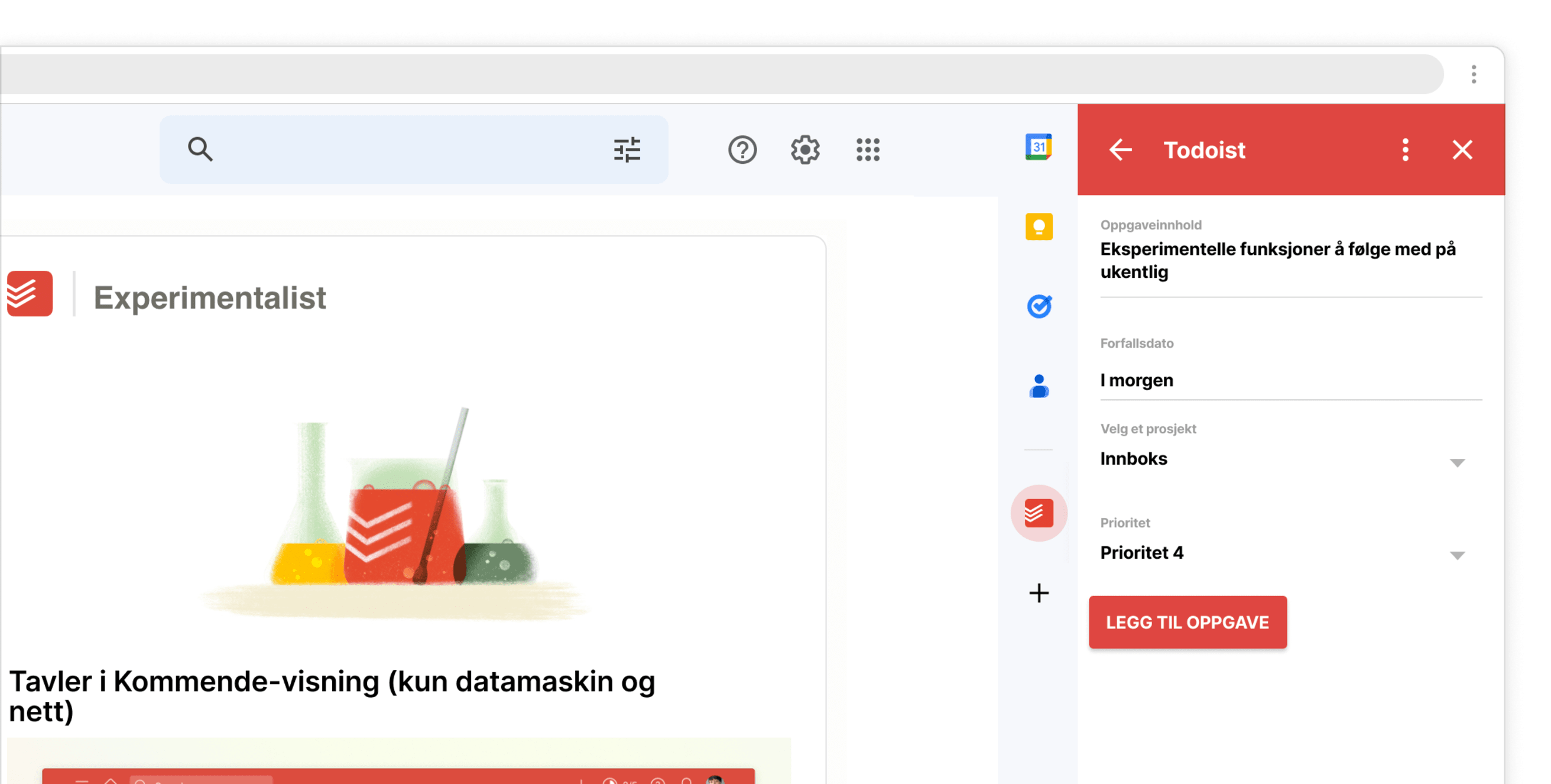 Planlegg tiden din uten problemer med Google Kalender-hendelser og Todoist-oppgaver – alt på ett sted.