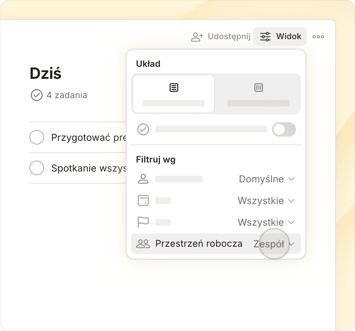 „Możliwość filtrowania zadań według przestrzeni roboczej to dla mnie prawdziwy przełom. Widok Dziś nie jest już zapełniony zadaniami, zanim mój dzień pracy tak naprawdę się zaczął”.