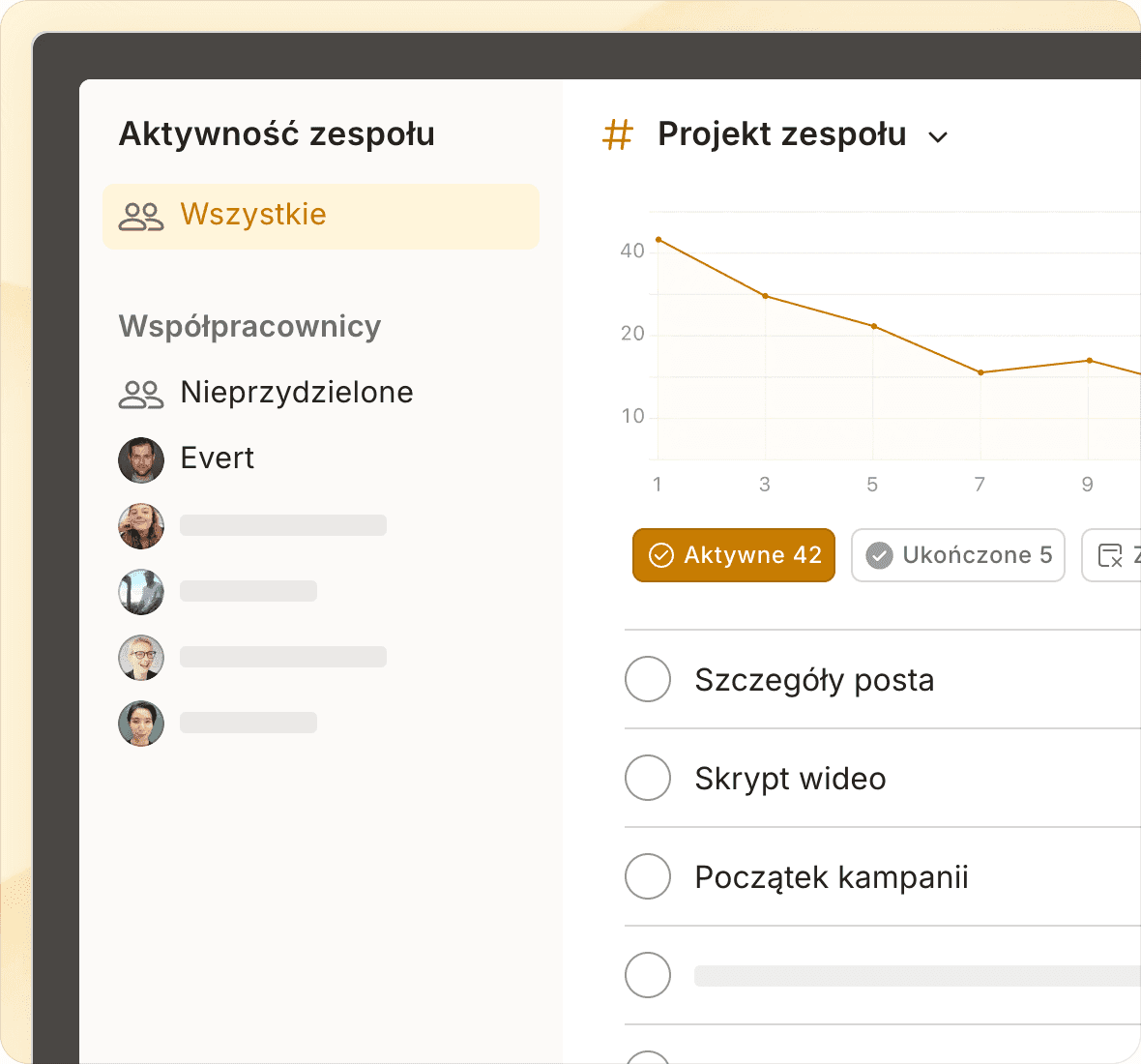 Bądź na bieżąco ze współdzielonymi zadaniami, projektami i terminami. Stworzony dla zespołów, które nie lubią komplikować sobie życia.