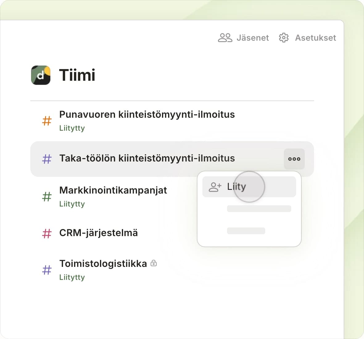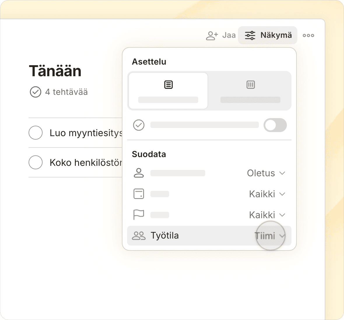 Anna tiimillesi yhteinen tila, jossa he voivat tehdä yhteistyötä ja viedä eteenpäin tärkeitä projekteja omien henkilökohtaisten tehtävien rinnalla, mutta kuitenkin erillään niistä.