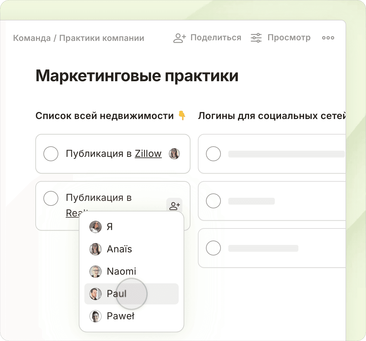 Предоставьте команде общее пространство для совместной работы над важными проектами – наряду с личными, но отдельно от них.