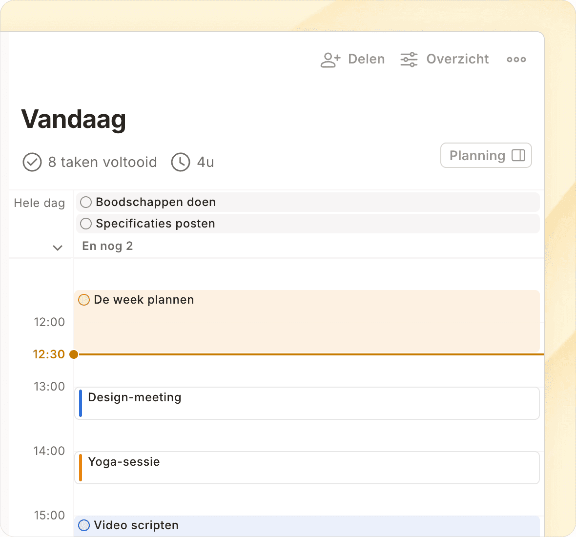 "De mogelijkheid om taken per werkruimte te filteren is een game-changer geweest. Ik word niet meer wakker om mijn overzicht Vandaag al meteen vol met werktaken te zien, nog voordat de werkdag begonnen is."