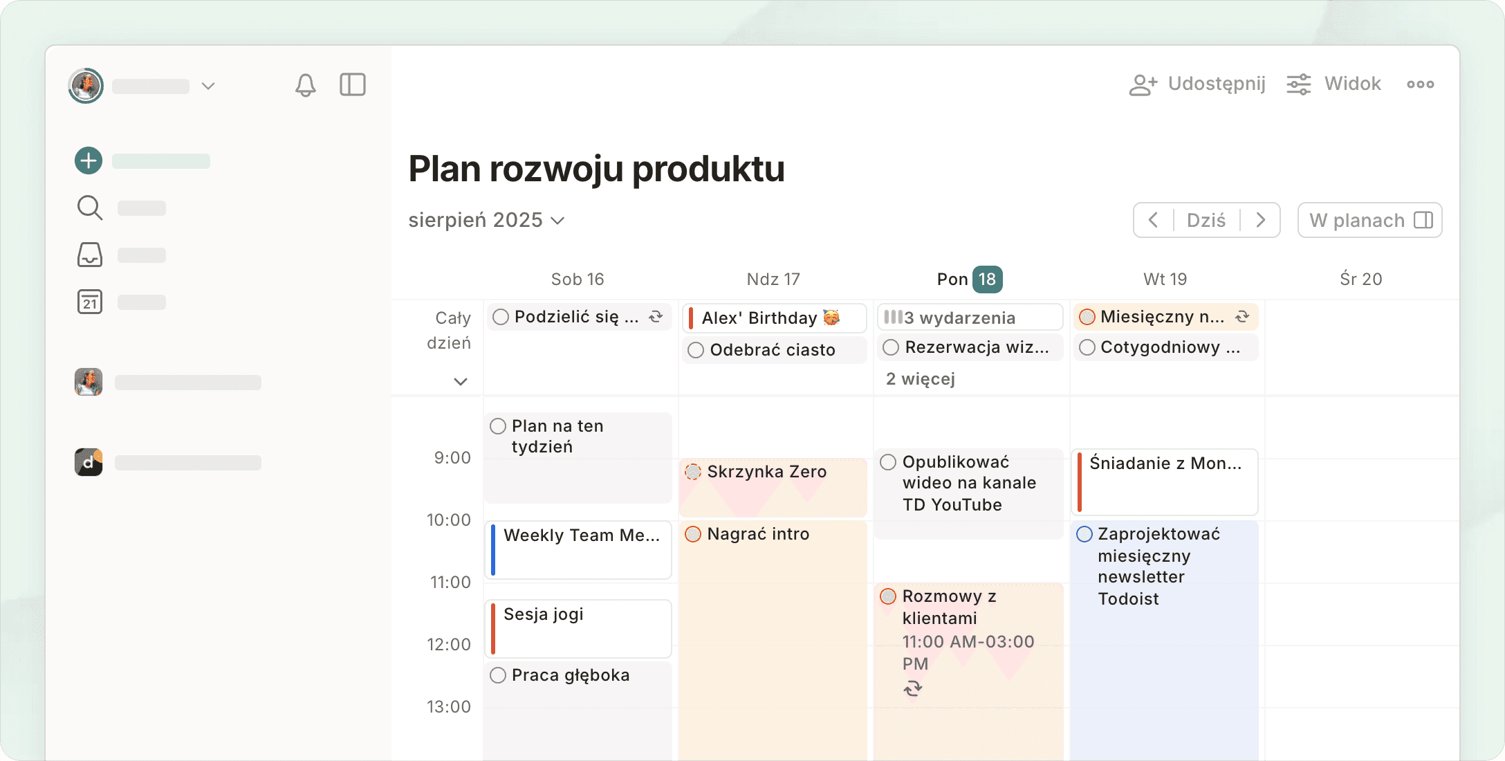 Zaplanuj swój czas bez wysiłku dzięki wydarzeniom w Kalendarzu Google i zadaniom Todoist – wszystko w jednym miejscu.