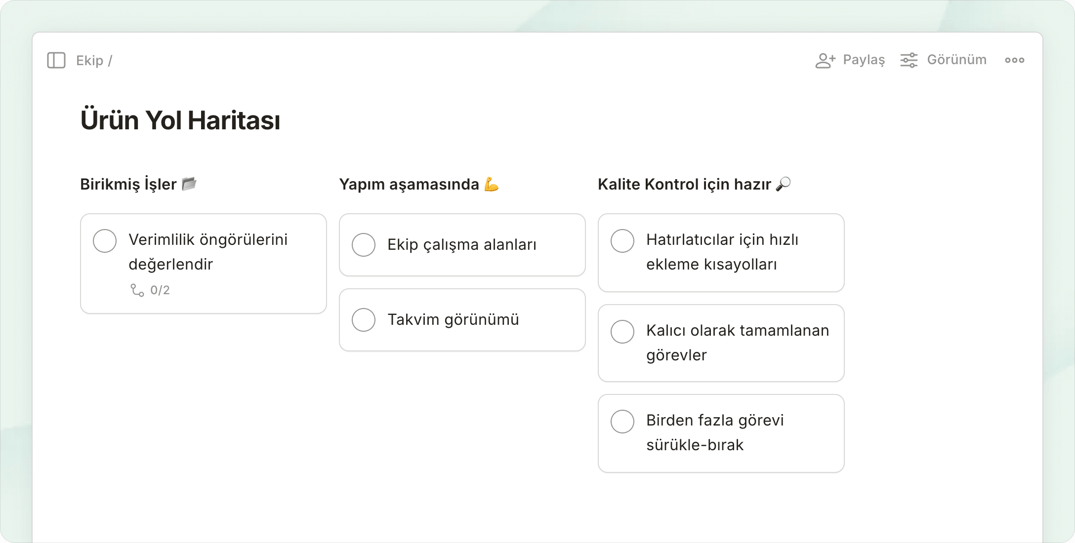 Çoğu proje ekip işidir. Herkesi tek bir yerde buluştur, uyumla çalışmanın keyfini çıkarın.