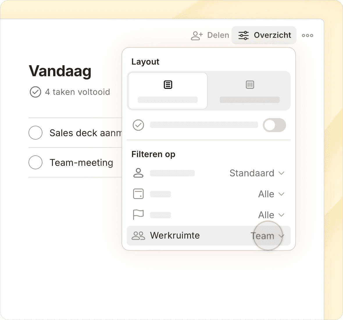 "De mogelijkheid om taken per werkruimte te filteren is een game-changer geweest. Ik word niet meer wakker om mijn overzicht Vandaag al meteen vol met werktaken te zien, nog voordat de werkdag begonnen is."