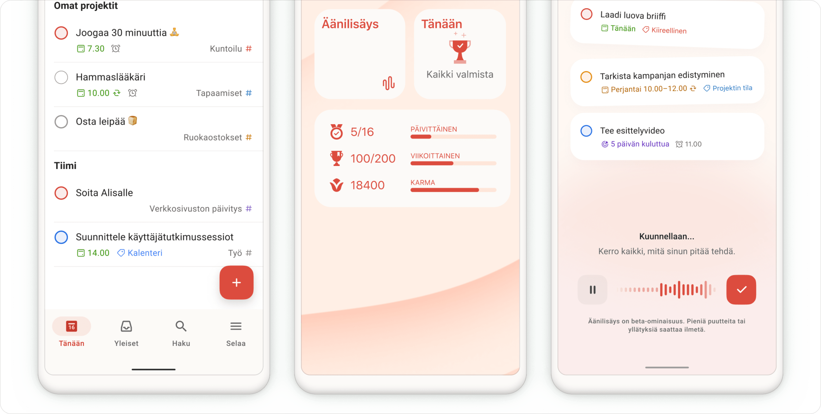 Luo helposti tehtäviä, priorisoi tärkeimmät ja hallitse aikaasi missä tahansa.